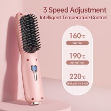 This straightening brush is built for efficiency and safety. The ceramic-coated comb teeth glide smoothly through your strands while evenly distributing heat to prevent damage. The integrated negative ion generator releases millions of ions that neutralize static, tame frizz, and leave your hair shiny and silky. The anti-scald design ensures your scalp and hands stay safe while styling, and the 360° rotatable cord gives you complete freedom of movement.