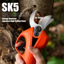 Whether you’re trimming thick branches or delicate stems, this electric pruner slices through wood up to 25mm (0.98 inch) thick in a single smooth motion. Its SK5 high carbon steel blade, paired with a durable brushless motor, ensures every cut is fast, sharp, and clean. The blade is even adjustable — just press and hold the trigger to switch between 25mm and 20mm cutting sizes for added control and versatility.