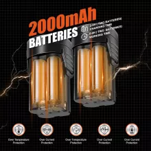 • 2 rechargeable 16.8V 2Ah lithium batteries for 6–8 hours of use