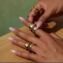 Crafted from durable stainless steel and finished with a luxurious 18K PVD gold plating, this ring delivers on both beauty and strength. Its sleek, geometric shape and open-ended design make it an eye-catching piece that stands out while remaining tasteful and minimal. Best of all, it’s fully waterproof and tarnish-resistant, making it perfect for everyday wear—rain or shine, gym or pool.