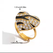 Crafted from durable stainless steel and coated in luxurious 18K PVD gold plating, this ring offers a brilliant finish that resists fading, tarnishing, and water exposure. The sparkling rhinestone inlay adds a soft shimmer that catches the light effortlessly. Its geometric heart shape gives it a trendy, modern feel, while the open, adjustable design ensures a comfortable fit for most finger sizes.
