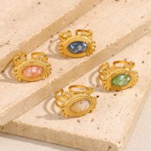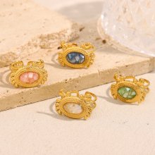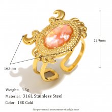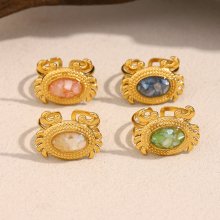 Elegant 18k Gold Plated Stainless Steel Crab Ring with Natural Stone