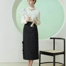 This skirt isn’t just a piece of clothing—it’s an expression of identity, elegance, and originality. Its niche Chinese-inspired design and unique decorative detailing make it a wardrobe gem for women who love mixing tradition with trend. The luxurious black jacquard fabric feels as good as it looks, while the silhouette flatters from all angles.