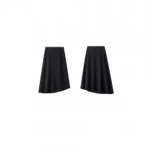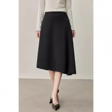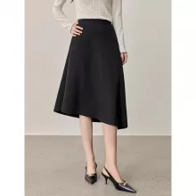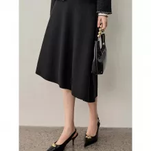 The midi length gracefully hits mid-calf, flattering all body types with a loose, flowing shape. The knitted fabric adds cozy texture without feeling bulky, making it ideal for year-round styling—pair it with a tucked-in blouse in spring or a soft turtleneck in winter. The solid black color and natural waistline make it versatile enough to dress up or down, while the asymmetrical detail adds a subtle yet modern twist.