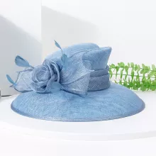 Elegant Blue Sinamay Church Hat with Feathers for Women – Summer Derby Style