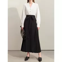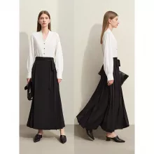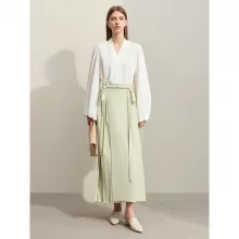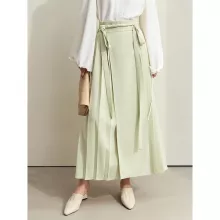 This pleated A-line skirt is more than just a piece of clothing—it’s a statement of refined taste. The ankle-length design and A-line silhouette provide a timeless, flattering shape that suits any occasion. The solid color and lace-up detailing add a distinctive touch, making it perfect for formal gatherings or special events. The non-stretch twill fabric ensures a crisp, polished look, while the natural waistline and loose fit provide unparalleled comfort. Pair it with a fitted blouse or a delicate top to complete your elegant ensemble.