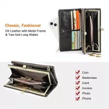 Discover the perfect blend of timeless elegance and everyday convenience with this genuine cowhide leather wallet designed especially for women. Crafted with premium materials and a vintage-inspired design, this long wallet is ideal for those who appreciate quality and style. Its sleek metal frame and secure hasp closure add a touch of sophistication while keeping your valuables safe and organized.