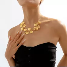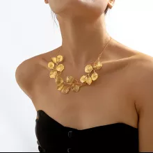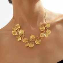 The multilayer blade collar design and luxurious gold color capture the latest aesthetic trend, ensuring that you stay ahead in the fashion game. The delicate ginkgo leaf design adds a unique, nature-inspired charm to your jewelry collection, making it an absolute statement piece. Designed for the modern woman, this necklace offers versatility, durability, and style, all in one.