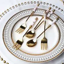 Our Elegant Gold Dessert Fork is more than just a dining utensil—it’s a statement of style and sophistication. Whether you’re serving a delectable dessert at a dinner party or enjoying a sweet treat at home, this fork transforms the ordinary into the extraordinary. With its luxurious gold finish, beautifully crafted ceramic handle, and durable stainless steel construction, it is the perfect choice for anyone looking to elevate their dining experience. Don’t miss out on adding a touch of elegance to your table—click “Add to Cart” today and indulge in a dining experience like no other!