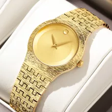• Luxurious Design: Messy ripple-effect gold-tone wristband paired with a simple, clean dial