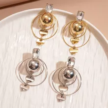 Elegant Gold-Tone Big Circle Heart Drop Earrings