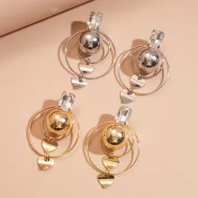 Discover the perfect blend of modern design and delicate charm with these stunning big circle heart drop earrings. Crafted from durable iron alloy with a gleaming gold-tone plating, these earrings are designed to catch the eye and elevate any outfit. Their bold, exaggerated shape features a smooth round circle paired with a delicate heart, creating a fashionable silhouette that’s both trendy and elegant.