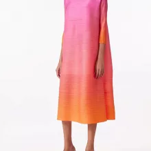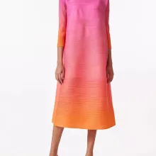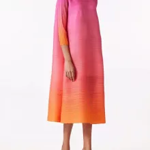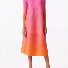 Step into effortless sophistication with this stunning gradient pleated dress designed to make every moment special. Featuring a soft blend of pink and orange hues that beautifully transition in a delicate gradient, this dress is a vibrant addition to your wardrobe. The turtleneck and full sleeves offer a polished look perfect for cooler days or air-conditioned environments, making it a versatile choice for year-round wear. Its mid-calf length adds a touch of modest elegance, ideal for office settings, casual outings, or stylish evening events.