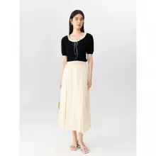 - Elastic Waistband: Designed with a comfortable elastic waist, the skirt offers a perfect fit while allowing ease of movement.