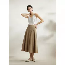 The Khaki High Waist A-Line Skirt is not just another wardrobe staple; it’s a statement of elegance and comfort. The wool blend fabric offers a touch of luxury, while the slight stretch ensures you stay comfortable throughout your day. The high waist design enhances your silhouette, and the draped A-line cut adds movement and grace. Whether you’re dressing up for a business meeting or going for a chic, casual look, this skirt adapts effortlessly to any occasion.