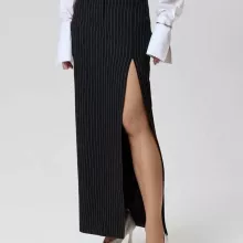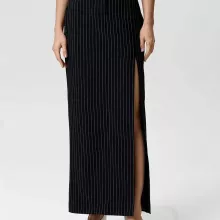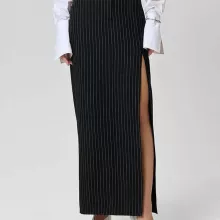 Crafted from a smooth blend of polyester and spandex, this skirt features a high-rise waist that flatters your shape, while the buttoned side slit adds a tasteful touch of allure and movement. The straight, slim fit elongates the figure and pairs beautifully with blouses, tees, or knitwear, making it a versatile staple for every season.