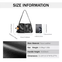 Measuring approximately 12.2 inches in length, 4.1 inches in width, and 8.3 inches in height, it offers just the right amount of space to carry your makeup, phone, keys, wallet, and daily essentials. The bag’s structured yet soft silhouette makes it easy to pair with any outfit, from jeans to dresses. The interior zipper pocket ensures your valuables stay secure, while the zipper and hasp closure keep everything neatly tucked away.