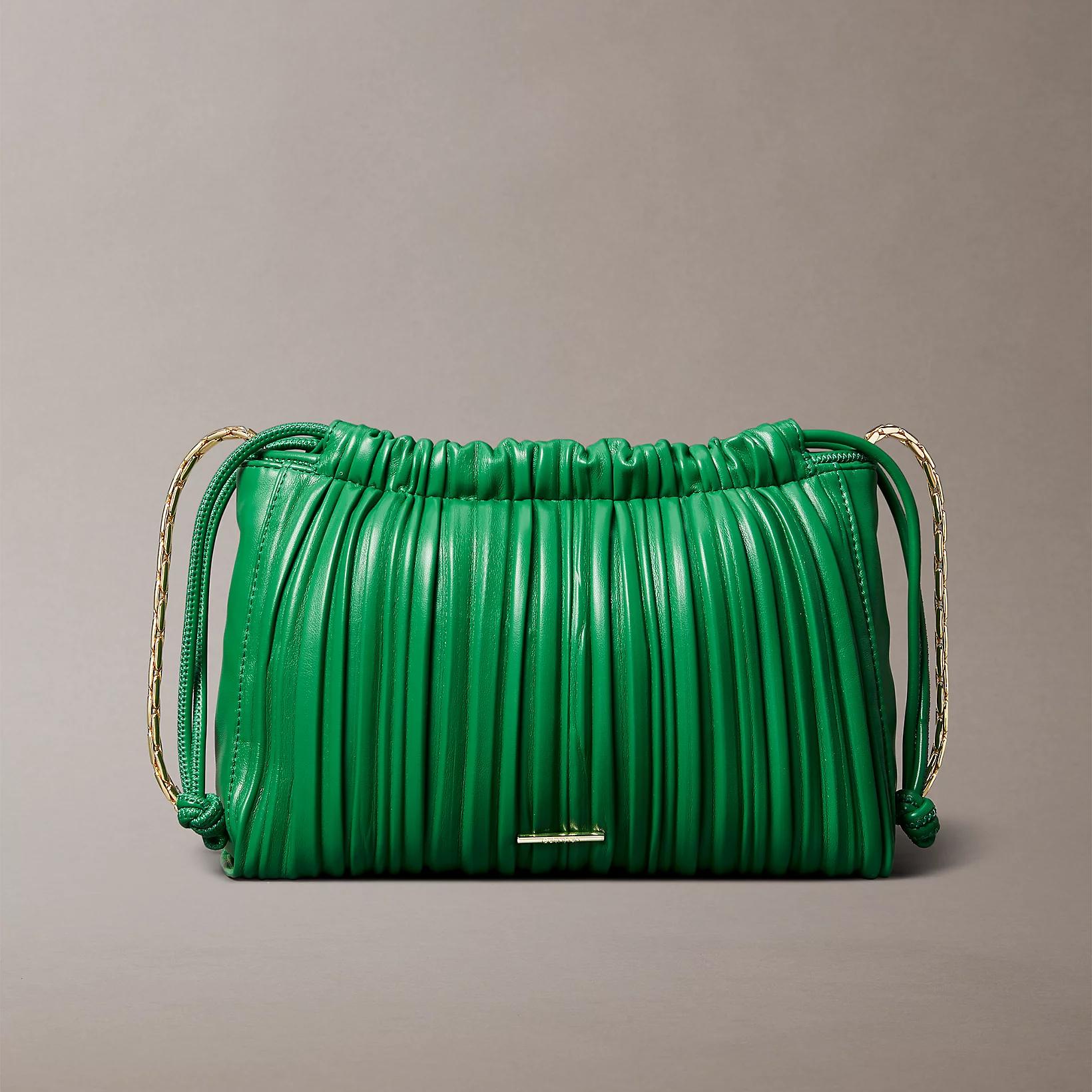 This handbag combines refined design with everyday functionality. Shaped in a trendy bucket silhouette, the minimalist solid color and tasteful appliques give it a fashion-forward edge. The smooth zipper closure secures your belongings, while the soft structure ensures all-day comfort on your shoulder or arm.
