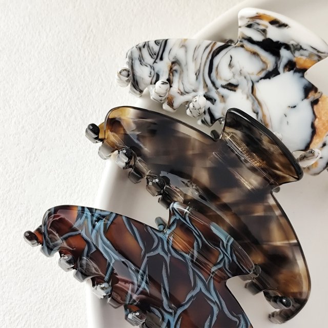 Transform your hair routine into a fashion statement. These marbled acetate hair claws aren’t just practical—they’re a style upgrade. Add a pop of color, a hint of texture, and a lot of elegance to your look with one simple accessory. Upgrade your hair game today and enjoy the perfect combination of function and style.