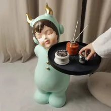 This figurine is a perfect blend of artistry and functionality. The charming girl character holding the tray adds an elegant touch to my living decor. Not only does serve as a delightful conversation piece, but the attached tray also comes in handy for holding various items.