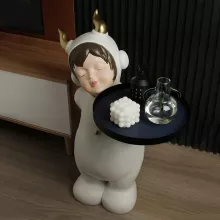 When I first saw this girl tray figurine online, I was immediately drawn by its elegant charm and distinctive Nordic touch which resonates so well with my personal aesthetic preferences. Crafted exquisitely down to the smallest details - each aspect speaks volumes about quality craftsmanship and attention-to-detail invested into creating such a masterpiece. She always manages to stand out while blending harmoniously with her surroundings- adding just enough personality without being too overbearing. One thing worth mentioning is how many compliments she garners whenever we have guests over!