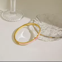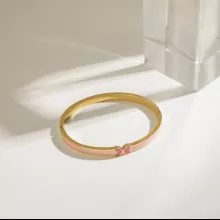 Grace your wrist with the subtle charm of this elegant pink stainless steel bow bracelet. Designed for the modern woman who loves to add a delicate pop of color to her daily style, this candy-colored bangle blends classic beauty with contemporary minimalism. The soft pink oil-drip finish paired with a dainty geometric bow shape brings a playful yet sophisticated touch to any outfit, making it perfect for stacking or wearing solo.