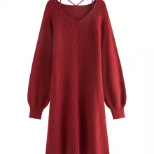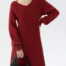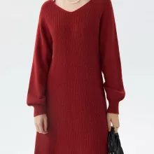 What makes this dress stand out is its blend of warmth, style, and comfort. The natural materials provide an extra level of coziness, while the classic V-neck and A-line cut make it flattering for every figure. Whether you’re looking for something chic to wear or a stylish outfit that can easily transition from day to night, this dress offers it all.