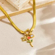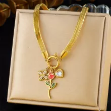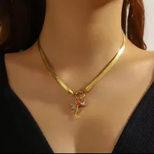 - Trendy Design – Features a detailed rose flower pendant on a stylish snake bone chain.
