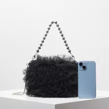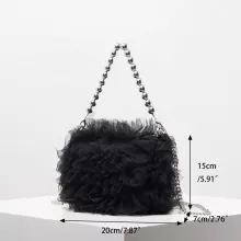 If you’re looking to add a sophisticated, feminine flair to your event look, the Elegant Ruffled Chain Tote is your go-to choice. Don’t miss your chance to stand out. Add this beauty to your collection and get ready to turn every event into a runway.
