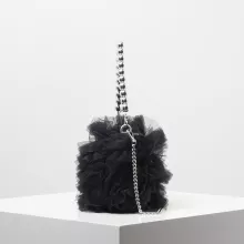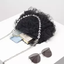 This fashionable tote features a soft pleated silhouette, delicate beading, and stylish ruffled details that catch the light and attention with every move. Crafted from high-quality polyester both inside and out, the bag feels soft yet durable. The zipper closure keeps your belongings secure while maintaining the bag’s elegant bucket shape. A sleek metal chain strap lets you wear it comfortably as a shoulder or crossbody bag, adding versatility to your style.