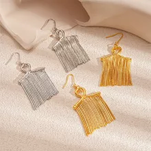 - Geometric Tassel Design: The unique geometric shape combined with flowing tassels makes these earrings a standout accessory, sure to attract compliments wherever you go.