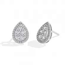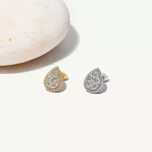 Each earring showcases a VVS1 clarity moissanite stone with a top-tier D grade color, ensuring exceptional fire and brilliance. The white rhodium plating enhances durability while adding a brilliant shine that resists tarnishing and maintains a fresh look over time. Designed as classic stud earrings with a teardrop shape, these pieces are a graceful and versatile addition to any jewelry collection.