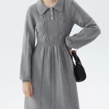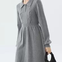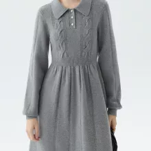 This dress combines modern elegance with comfort, making it an essential piece for your wardrobe. The soft knit fabric provides warmth and breathability, while the stylish A-line silhouette and full sleeves keep you looking chic and feeling comfortable. The unique twisted knit design and Peter Pan collar add subtle details that make this dress stand out. With easy maintenance and a versatile design, this dress will quickly become one of your favorites.