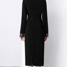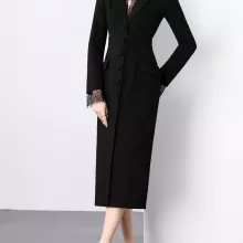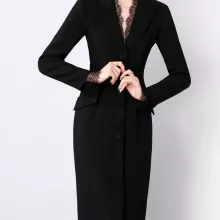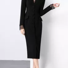 Made from high-quality silk fabric, this dress features a subtle sheen and luxurious feel against your skin. The notched suit collar adds a polished, professional touch, while the delicate lace patchwork brings soft femininity to the look. Its slim, straight silhouette gently hugs your curves without being restrictive, thanks to the slight stretch in the material—offering comfort and elegance in equal measure.