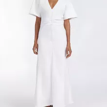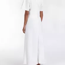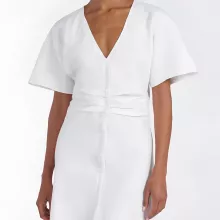 The soft white color keeps it fresh and versatile, while the short sleeves and empire waistline offer a flattering shape that suits a variety of body types. It’s the kind of dress you’ll reach for again and again—elegant enough for special moments, yet simple enough for everyday wear.