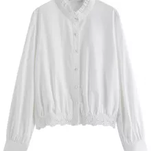 Stand out with subtle sophistication. This white lace shirt isn’t just a staple — it’s a statement. It brings classic charm into the modern day with its clean lines, soft textures, and romantic touches. Whether you’re dressing up for the office or layering it with a jacket for weekend brunch, it’s the shirt you’ll keep reaching for. Treat yourself to this wardrobe essential and make elegance look easy.