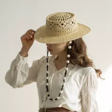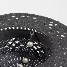 Step into the sunshine with grace and elegance in our Designer Elegant Wide Brim Straw Hat, crafted for women who appreciate fashion-forward accessories with practical benefits. Whether you’re headed to the beach, enjoying a spring picnic, or simply strolling through town, this hat combines timeless style with sun protection in the most beautiful way. Hand-woven from natural papyrus, it features a unique hollow-knit design adorned with a delicate hanging chain and pearl accents—adding just the right amount of luxury to your warm-weather wardrobe.