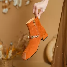 Discover the perfect blend of elegance and everyday comfort with these women’s ankle boots, designed specifically for autumn and winter. Crafted from soft sheep suede leather, these boots feature a modern square toe and a convenient side zipper for easy wear. The low 1.2-inch heel offers just the right lift without sacrificing comfort, making them ideal for all-day wear.