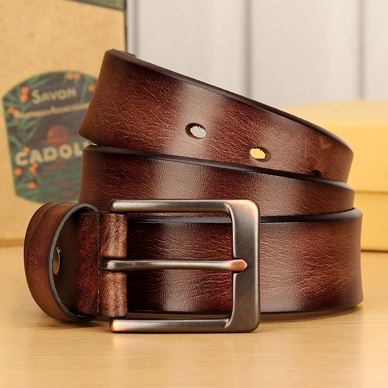Unlike synthetic belts that crack and wear out quickly, this genuine leather belt offers exceptional quality and durability. The naturally soft yet sturdy leather molds to your shape over time, ensuring maximum comfort with every wear. The rich, solid color and polished copper buckle make it a standout piece that adds a refined touch to your look.