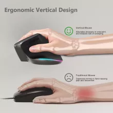Just got this vertical wireless mouse and it's a dream! The ergonomic design is so comfortable, the RGB lighting is super cool, and it switches between Bluetooth & 2.4G seamlessly - plus no more batteries!