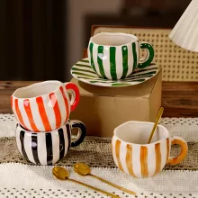 More than just a mug, this piece is a statement of grace and good taste. It’s best enjoyed during quiet mornings, afternoon breaks, or shared tea times with loved ones. Let this Ceramic Striped Coffee Cup & Saucer bring joy to your daily routine, reminding you that even the simplest moments can be made beautiful.
