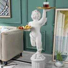 When I first laid my eyes on this European Style Cupid Angel Resin Statue, I knew it was exactly what my living room needed. It's not a decorative piece, but an artistic masterpiece. The intricate detailing and the beautiful craftsmanship are truly commendable. With its tray functionality, it also serves as a handy spot for keeping small items like keys or coins.