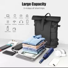 Meet the backpack built to keep up with your lifestyle. This expandable roll-top travel backpack is designed for people who need space, organization, and durability in one sleek package. Whether you’re heading out for a weekend hike, cycling around town, commuting to work, or preparing for a long outdoor adventure, this bag adapts effortlessly to your routine. Its spacious interior, smart pocket layout, and water-repellent fabric make it a dependable choice in any environment.