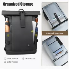 This backpack features multiple pockets, offering practical organization for all your must-have essentials. The roomy main compartment easily fits a 17-inch laptop, while the side and front pockets keep water bottles, tools, maps, or snacks within quick reach. The roll-top opening allows you to adjust the capacity on demand, giving you more freedom to pack the way you want.