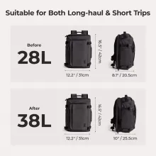 This backpack is ideal for 1–3 day trips in its standard size and easily handles 4–6 day trips when expanded. It’s perfect for carry-on travel, daily commuting, business trips, gym use, and even remote work setups. Thanks to its airline-friendly size and flexible capacity, it works just as well under a plane seat as it does in a car trunk or train overhead bin.
