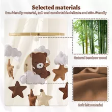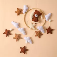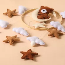 Every element of this mobile is designed with your baby in mind. The plush hanging toys are made from soft felt—perfect for newborns’ sensitive skin. Suspended from a sturdy bamboo frame, the mobile is lightweight and safe to hang above the crib. The friendly cartoon characters, including sweet bears and sleepy moons, spark visual interest and bring a warm, playful touch to any nursery.