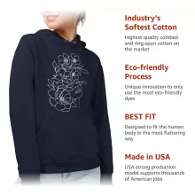 Floral line face Hoodie is proudly made with 7x less water than average manufacturers, in recycle-friendly facilities that also guarantee zero sweatshop conditions. Floral line face Hoodie is Designed and printed in California.