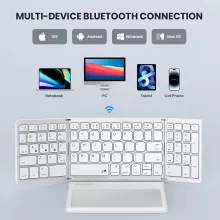 This foldable Bluetooth keyboard is the ideal solution for anyone who needs to stay productive while traveling or working remotely. Its slim profile and lightweight design make it easy to carry, while the full-size keys and integrated numeric keypad ensure that you can type comfortably no matter where you are. The large touchpad offers effortless navigation, allowing you to control your device without needing extra peripherals. Whether you’re in a coffee shop, at the airport, or on a business trip, you can always have a full workstation at your fingertips.