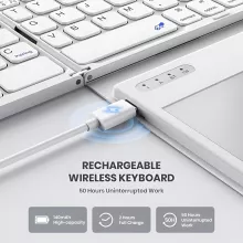 The key to productivity while on the move is convenience and comfort—and this foldable wireless keyboard delivers on both. The leather finish adds a stylish touch, while the advanced Bluetooth connectivity allows you to seamlessly switch between devices with ease. Say goodbye to tangled wires and bulky accessories; this keyboard is designed to keep up with your demanding schedule while offering the flexibility you need. With its rechargeable battery and long-lasting power, you can work anywhere, anytime.