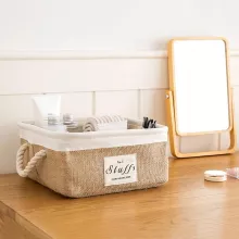 Bring order to your everyday chaos with this foldable cotton linen storage basket, designed to make organizing simple and stylish. Crafted from a breathable blend of jute and white cotton with a durable EVA inner layer, this basket is sturdy yet soft, perfect for use on desktops, inside small cabinets, or on open shelves. Its natural texture and fresh printed design make it an attractive accent in any room, from your home office to the kids’ playroom.